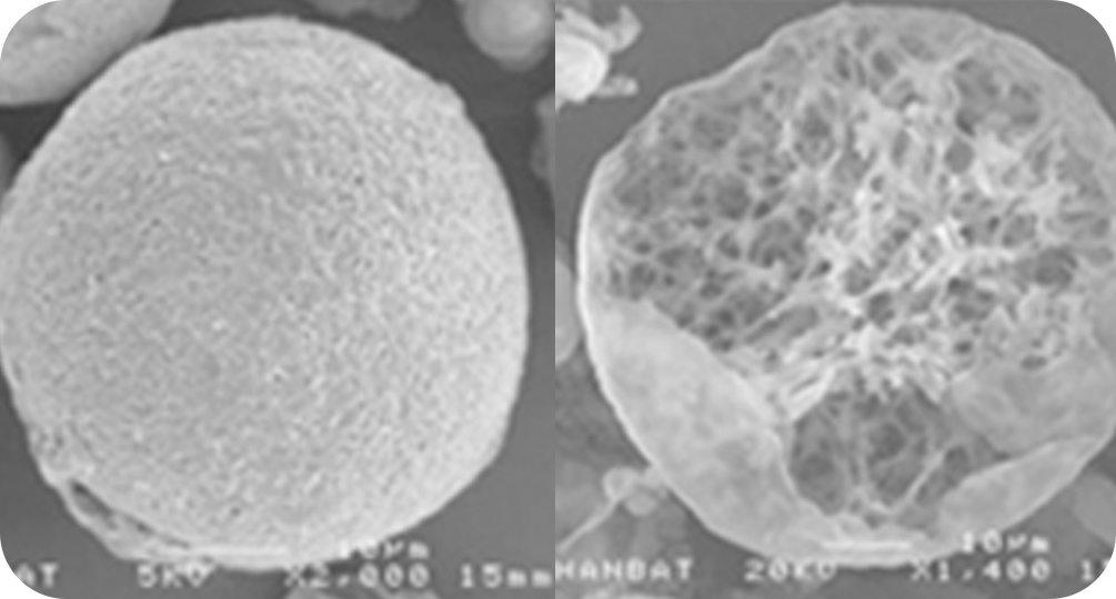 쥬베룩은 입자 크기가 굉장히 작고 둥근 다공성 망상구조로